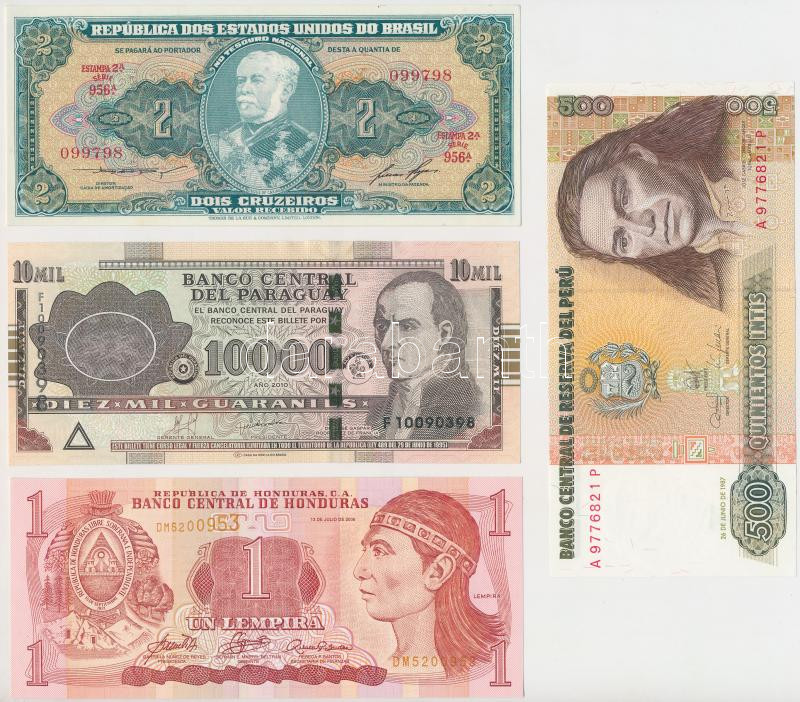 Mixed: Brasil 1956-1958. 2 Cruzeiros + Peru 1987. 500 Intis + Honduras 2006. 1 Lempira + Paraguay 2010. 10.000 Guaranies C:UNC,AU