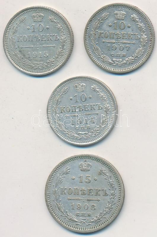 Description: Orosz Birodalom 1907. 10k Ag + 1908. 15k Ag + 1914. 10k Ag + 1915. 10k Ag T:2