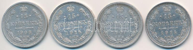 Orosz Birodalom 1907-1914. 15k Ag (4x) T:2 Russian Empire 1907-1914. 15 Kopeks Ag (4x) C:XF