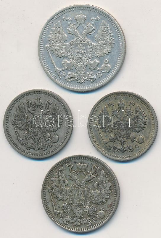 Orosz Birodalom 1910. 10k Ag + 20k Ag + 1914. 15k Ag + 1915. 10k Ag T:... https://www.darabanth.com/en/266-Online-auction/266.0/Numismatics/Worldwide-silver-and-metal-coins~500012/Orosz-Birodalom-1910-10k-Ag-plus-20k-Ag-plus-1914-15k-Ag-plus-1915-10k-Ag-T2--Russian-Empire-1910-10-Kop~II1331700
