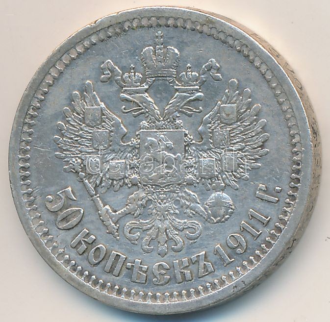 https://www.darabanth.com/en/266-Online-auction/266.0/Numismatics/Worldwide-silver-and-metal-coins~500012/Orosz-Birodalom-1911-50k-Ag-II-Miklos-T2-2---Russian-Empire-1911-50-Kopeks-Ag-Nicholas-II-C~II1331776