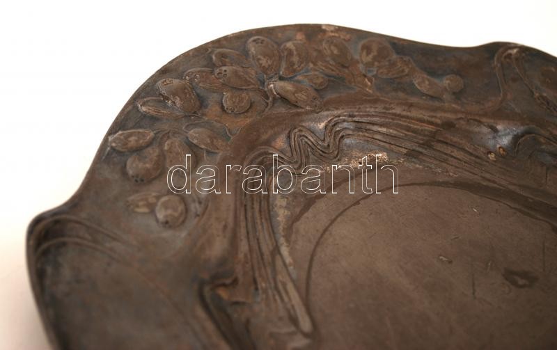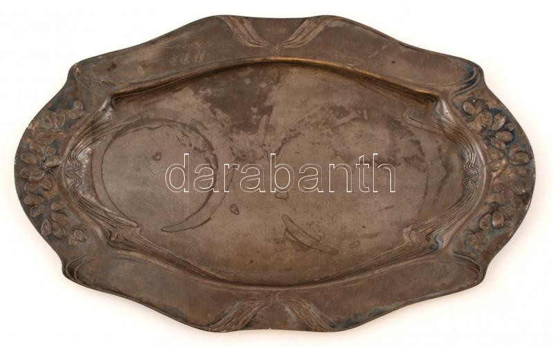 Orivit-Metallwarenfabrik, Köln, szecessziós ón tálca,1904, jelzett, kissé foltos, 47x29cm