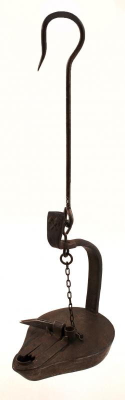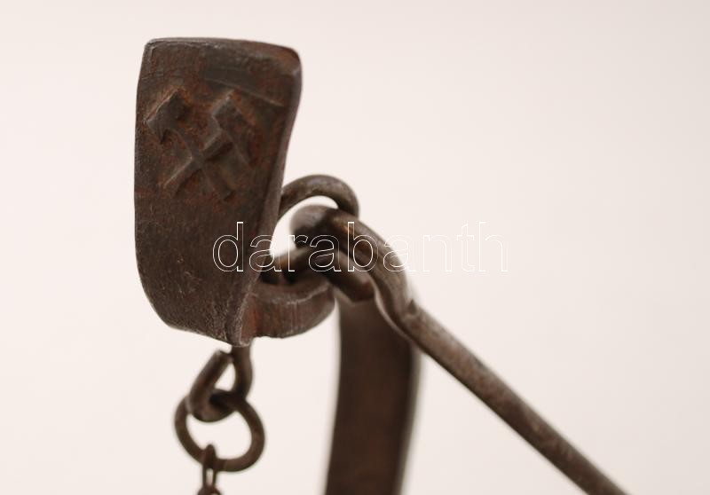 cca 1910 Béka alakú bányamécses, fém, "Demény Ign. Műszaki-, Fém- és Pléhcikkek Gyára Budapest" felirattal, kopásnyomokkal, m: 35 cm