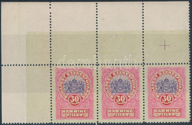 1931 Budapest Székesfőváros 30f ívsarki vízszintes 3-as csík
