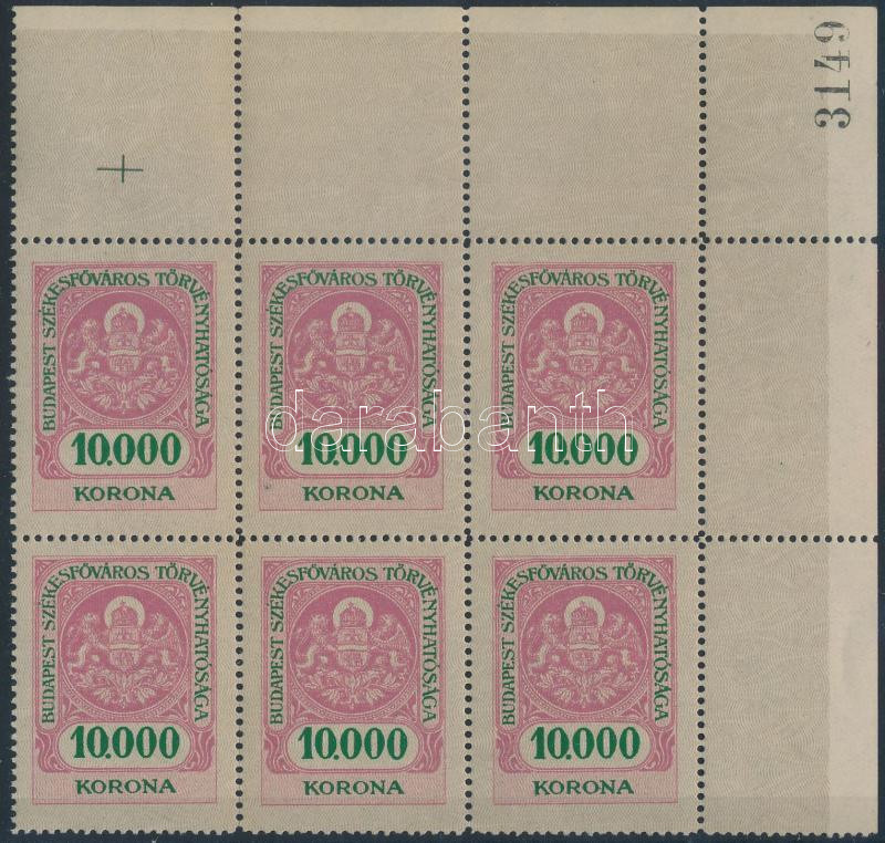 https://www.darabanth.com/en/266-Online-auction/266.0/Other-collectibles/Document-Stamps~14/Budapest-Szekesfovaros-Torvenyhatosaga-10000K-ivsarki-6-os-tombben~II1330942