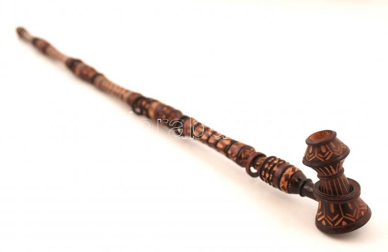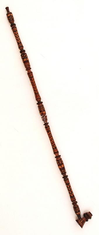 Két részből álló faragott fa szipka, szép állapotban, h: 55,5 cm