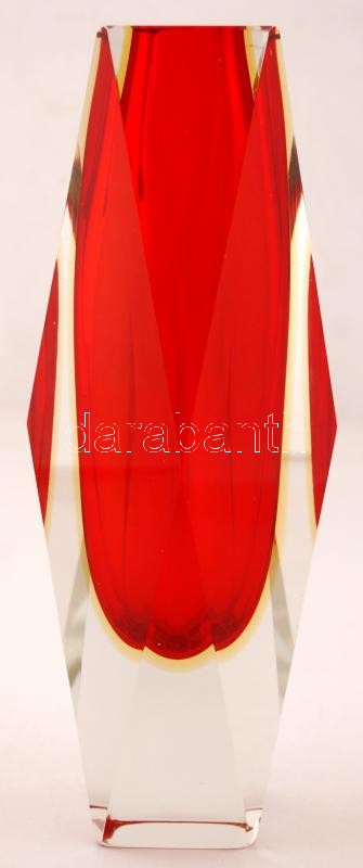 Muránói gyémánt váza, több rétegű, formába öntött, jelzett (Crystal), ...