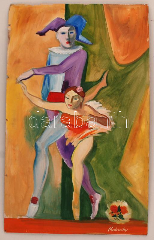 Medveczky jelzéssel: Táncosok. Olaj, falemez, 70×43 cm