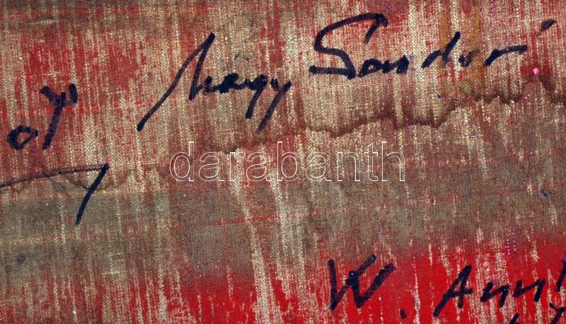 Nagy Sándor (1948-): Pokol. Kollázs, vászon, jelzett a hátoldalán, sér...