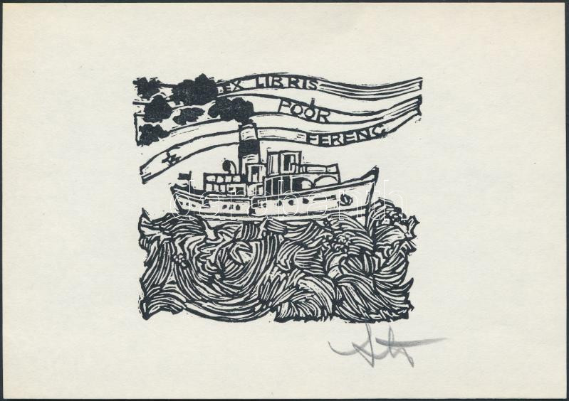 Stettner Béla (1928-1984): Ex libris, Poór Ferenc. Linó, papír, jelzet...