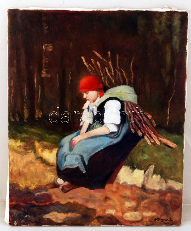 Varga Sándor (?-?): Rőzsegyűjtő asszony, Olaj, vászon, 60×48 cm