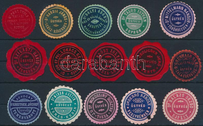 Vidéki ügyvédek 15 db klf pecsétbélyeg