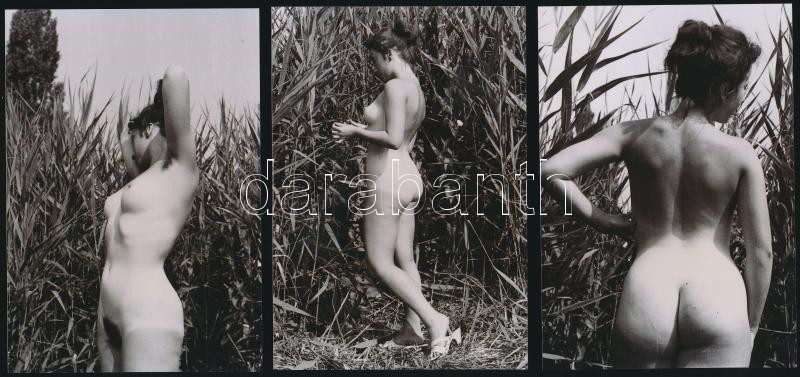 cca 1970 Elbújva a nádasokban, 9 db finoman erotikus vintage fotó, 13x9 cm / 9 erotic photos, 13x9 cm