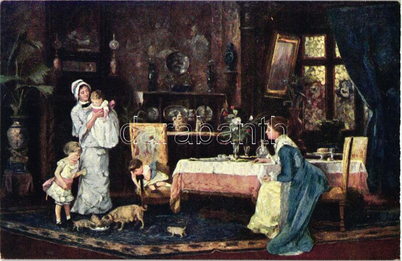 Két család / Hungarian art postcard s: Munkácsy