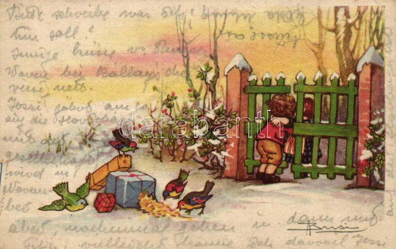 Children meeting at the gate, gifts, birds, Dell'Anne i Gasparini No. 752-2, s: Busi (fa)