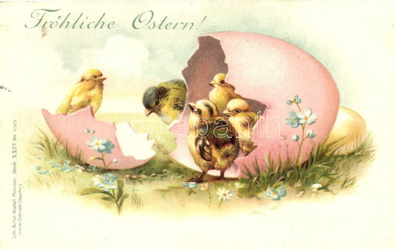 Easter, chicken, Gebrüder Obpacher Serie XXIV. No. 17479. litho