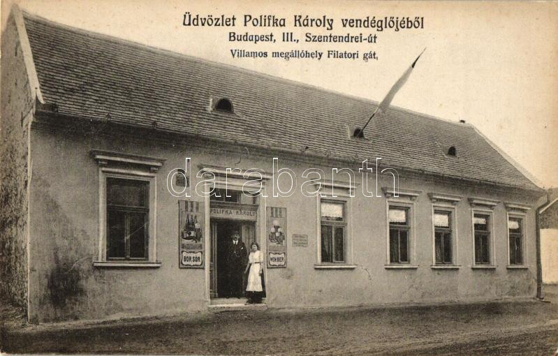 Budapest III. Óbuda, Szentendrei út, Polifka Károly vendéglője, az épü...