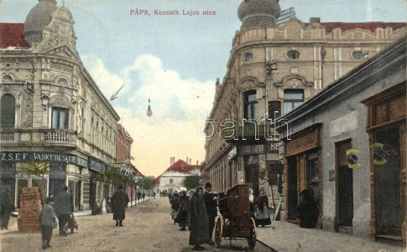 https://www.darabanth.com/en/266-Online-auction/266.0/Postcards/Hungary~300057/Papa-Kossuth-Lajos-utca-kintornas-Antikvarium-Stern-Lipot-uzlete-Kozgazdasagi-Bank-vask~II1332635
