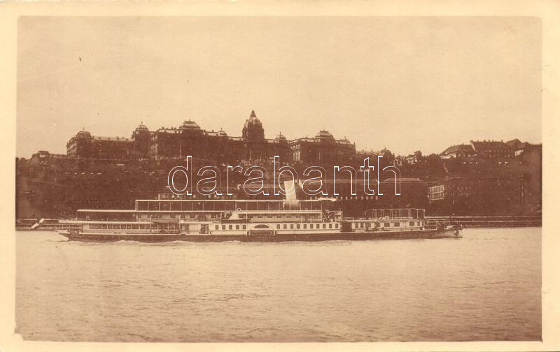 A Saturnus gőzhajó, háttérben a budai vár / Steamship in Budapest, photo