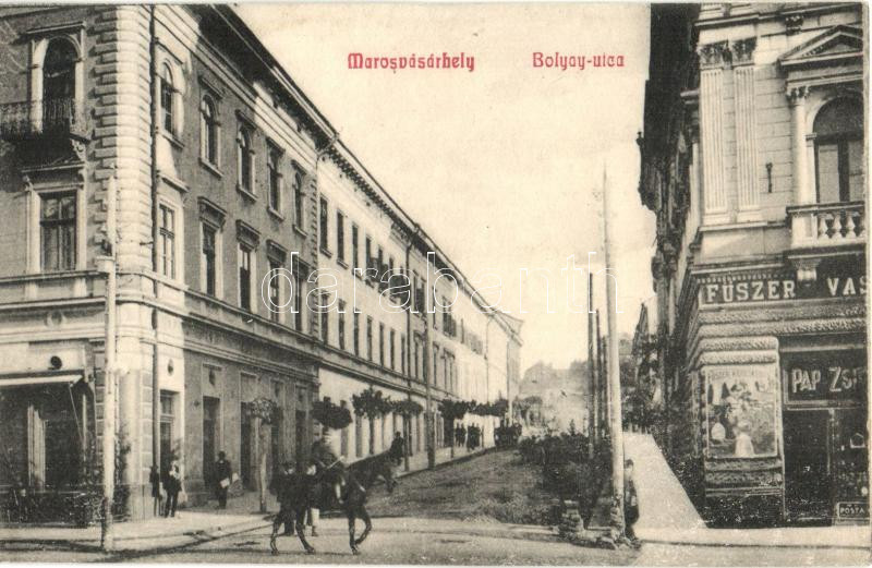 https://www.darabanth.com/en/266-Online-auction/266.0/Postcards/Transylvania~300058/Marosvasarhely-Bolyay-utca-Pap-Zsigmond-fuszer-es-vaskereskedese-street-with-shop-r~II1333186
