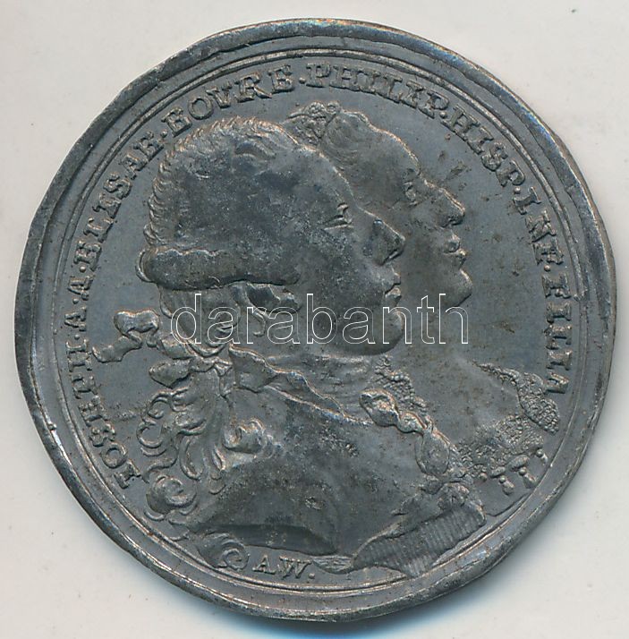 Austria 1760. "IOSEPH A A ELISAB BOVRB PHILIP HISP INF FILLIA / FELIX CONNVBIVM - CELEBRAT VINDOB VI OCT MDCCLX" Sn medallion commemorating the marriage of Joseph II and princess Isabella of Parma. Sign.: Franz Anton Widemann (5,62g/29mm) C:VF edge error, slightly curved