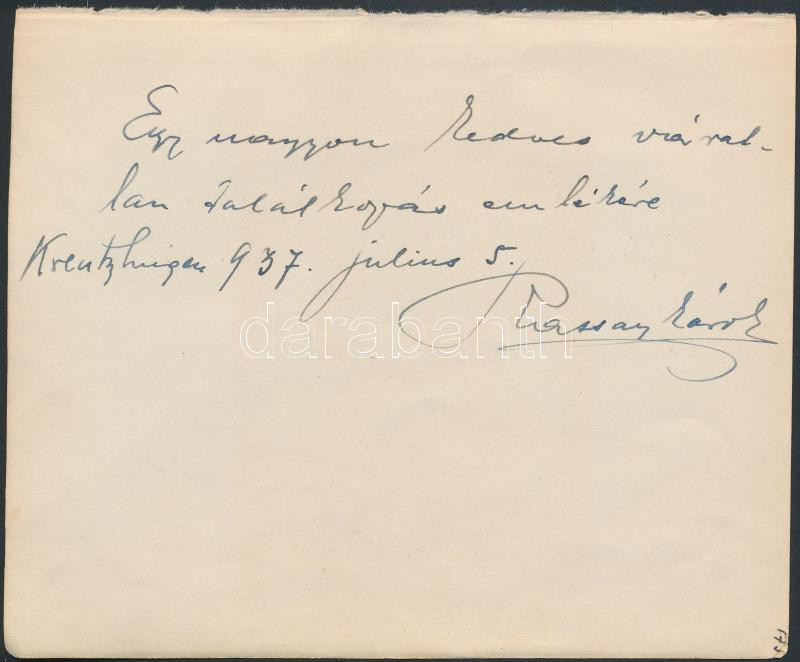 https://www.darabanth.com/en/267-Online-auction/267.0/Other-collectibles/Autographs~17/1937-Rassay-Karoly-1886-1958-ugyved-politikus-udvozlo-sorai-es-alairasa-kivagott-lapon~II1309896