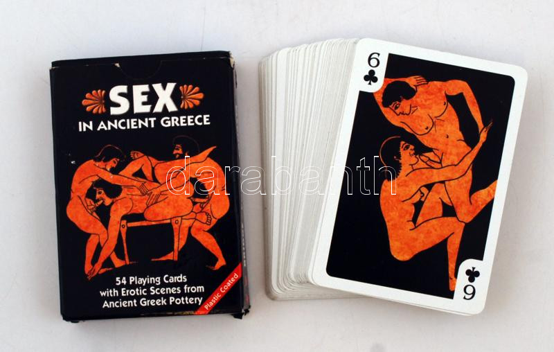 Ókori görög sex römi kártya, rajzós pornográf jelenetekkel, eredeti dobozában, 52+2 lap