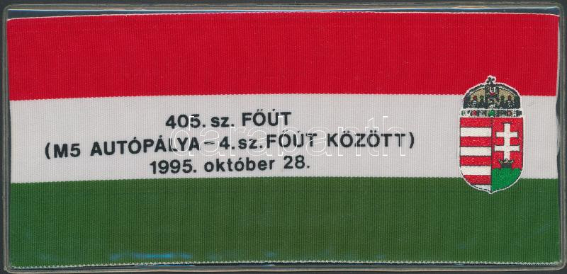 1995 A 405. sz. főút megnyitásakor használt szalag egy darabja, 20x10 cm