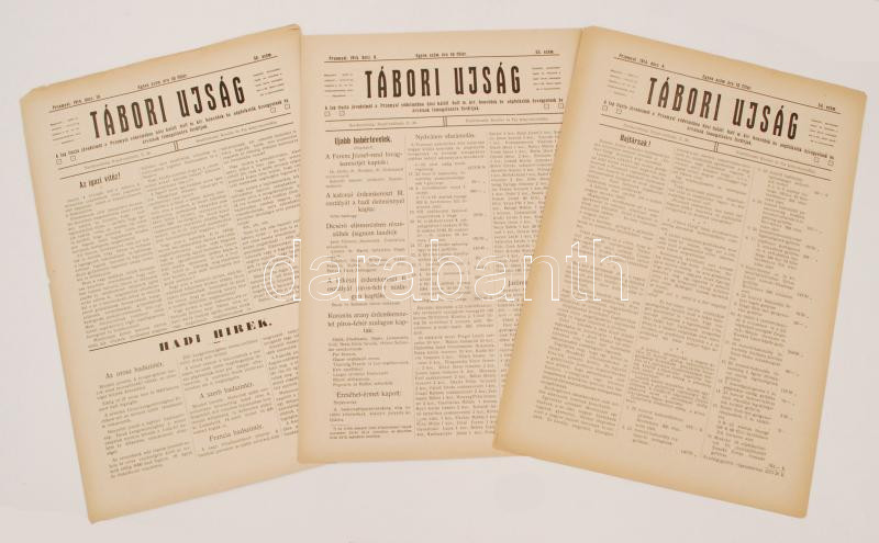 1914 Przemyśl, Tábori Újság, a 23. honvéd gyalogezred által Przemyśl e... https://www.darabanth.com/en/267-Online-auction/267.0/Other-collectibles/Military~24/1914-PrzemyC59Bl-Tabori-Ujsag-a-23-honved-gyalogezred-altal-PrzemyC59Bl-elso-es-masodik-ostro~II1241696