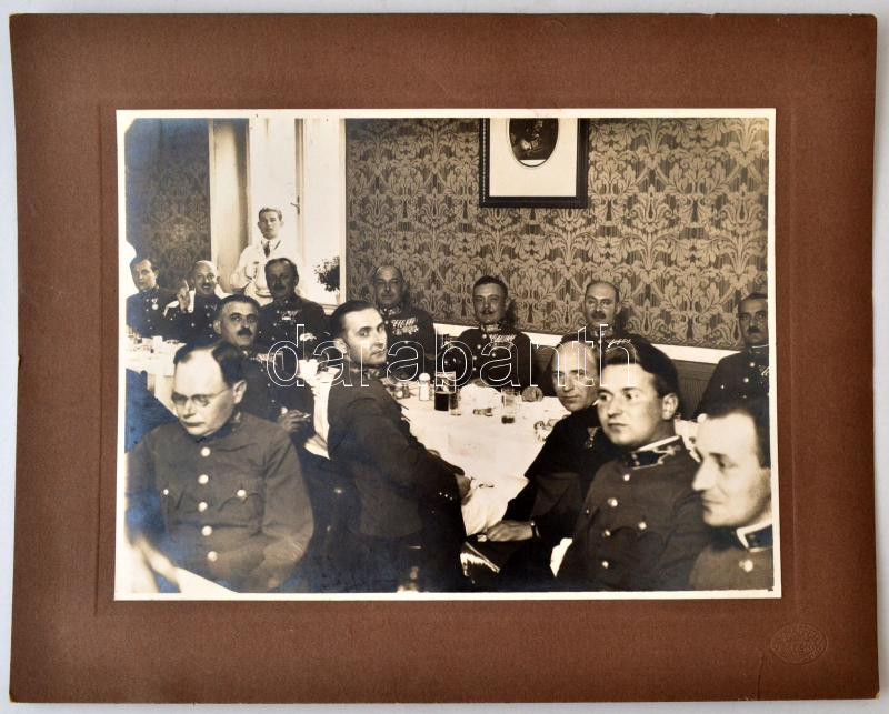 cca 1920 Katonatisztek ebédje, kartonra kasírozott fotó Schäffer budap...