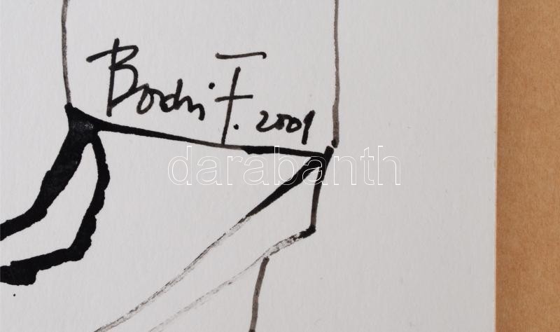 Bodri Ferenc (1943-): Női akt, tus, jelzett, papír paszpartuban, 39x29...