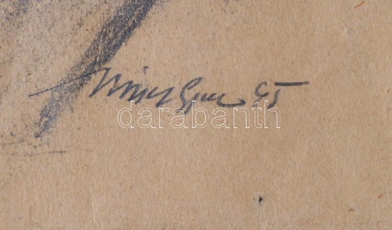 Hincz jelzéssel: Férfi portré, grafika, papír, hajtás nyomokkal, 33x2...