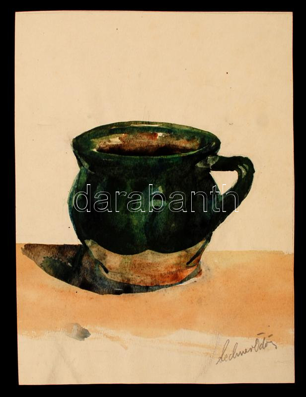 Kismarty Lechner Ödön (1916-2001): Bögre, Akvarell, papír, jelzett, 2...