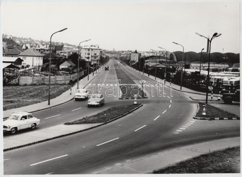 cca 1960 Budapest, autóbusz garázs és a bevezető Balatoni út, 17,5x24 cm