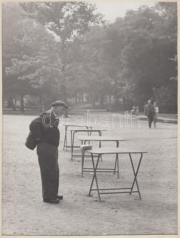 cca 1960 Kalocsai Rudolf: Hajnali öltözködés a Ligetben (Bp.), felirat...