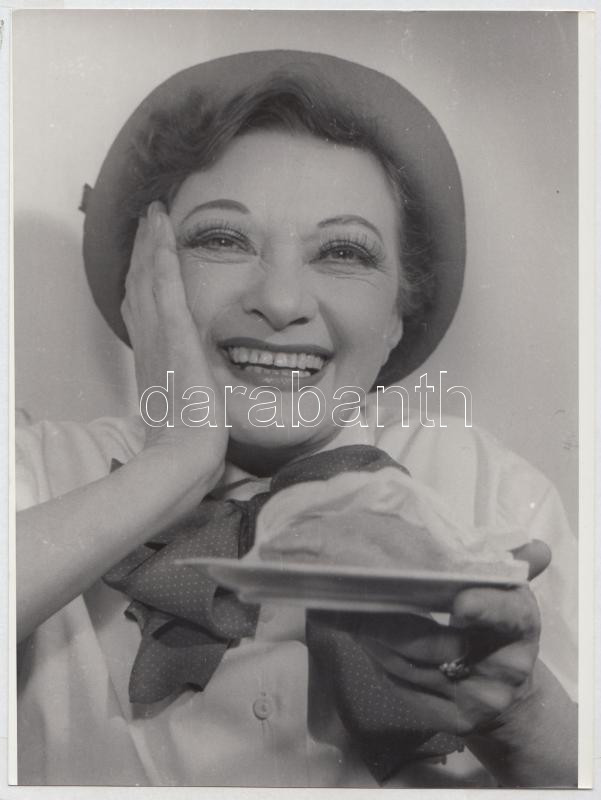 cca 1960 Kiss Manyi (1911-1971) színésznő sütivel, 24x18 cm