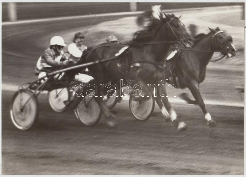 cca 1975 Ügetőverseny, jelzés nélküli vintage fotóművészeti alkotás Ge...