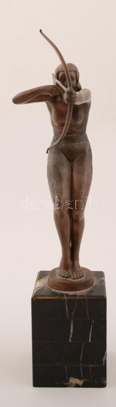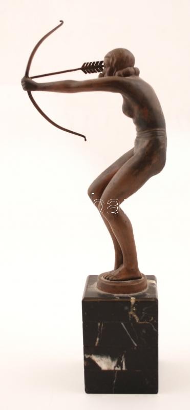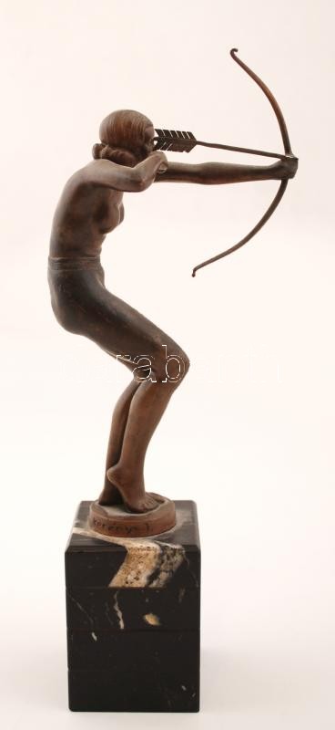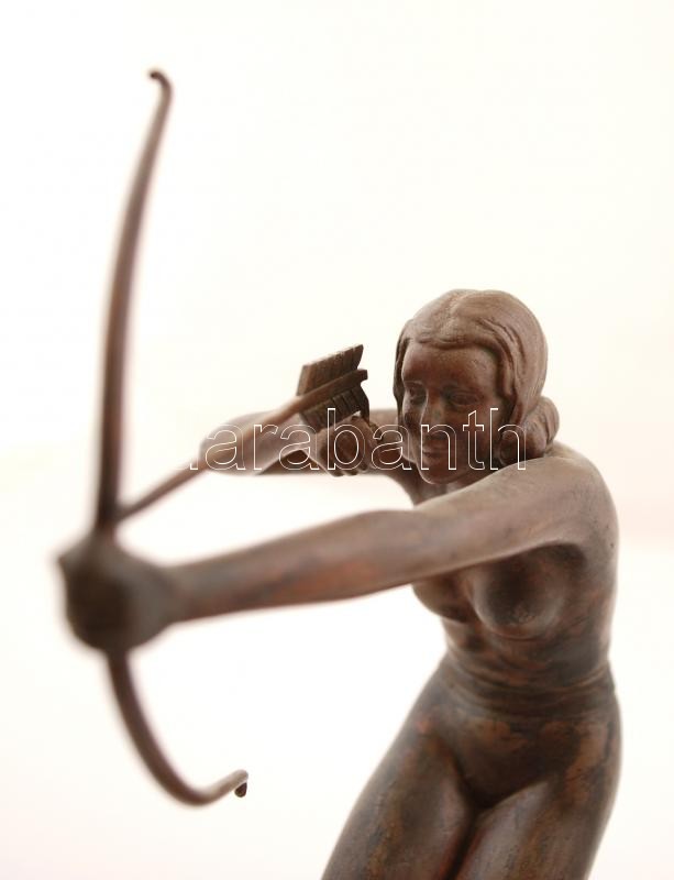 Kerényi Jenő (1908-1975): Íjász nő. Bronz, jelzett, márvány talapzaton, m:20,5 cm, árverési katalogussal