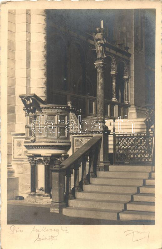 Pécs, Székesegyház, szószék; Zsabokorszky mérnök - fotós által aláírt ...