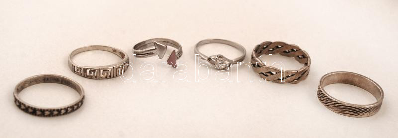 Ezüst gyűrű tétel, 6db, Ag., bruttó:10,7gr.jelzettek /Silver rings, 6pz, , Ag, gross: 10,7gr., marked