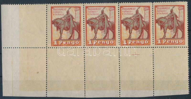 1945 Budapest Székesfőváros városi illetékbélyeg 1P üresmezős 4-es csíkban
