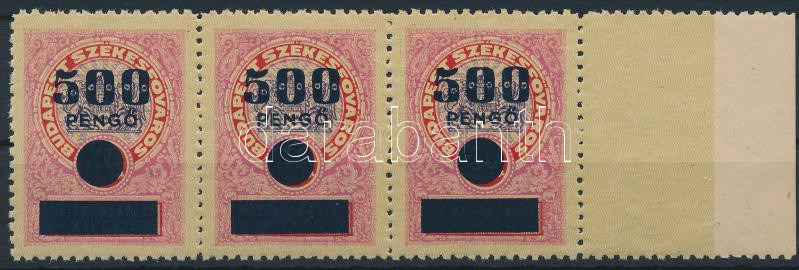 1945 Budapest Székesfőváros városi illetékbélyeg 500P hármascsíkban