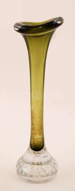 Dekoratív üvegváza, színezett, jelzés nélkül, apró kopásnyomokkal, m: 22,5 cm