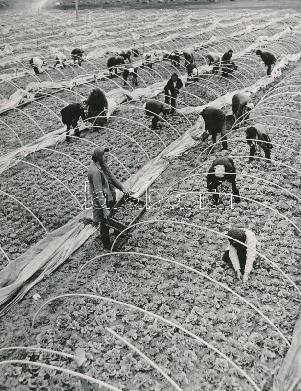 1970 Dánszentmiklós, a Micsurin TSz salátatermelő fóliás földje, vinta...