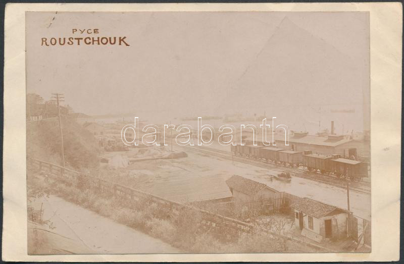 cca 1900 Rusze(Ruszcsuk), Bulgária, Kikötő, fotó papírra ragasztva, felületén törésnyomokkal, 8,5x12 cm / Ruse, Bulgaria, photo, 8,5x12 cm