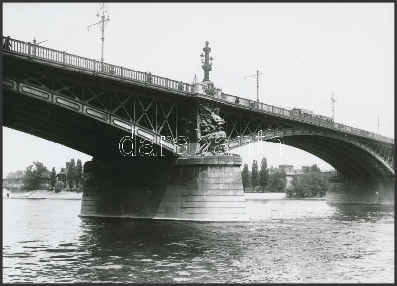 cca 1935 Budapest, a 73-as (vagy a 23-as?) villamos a Margit hídon, korabeli negatívról készült modern nagyítás, 13x18 cm