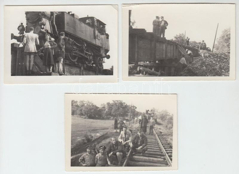 cca 1960 Sínpálya helyreállítása, 3db fotó, 6x9cm