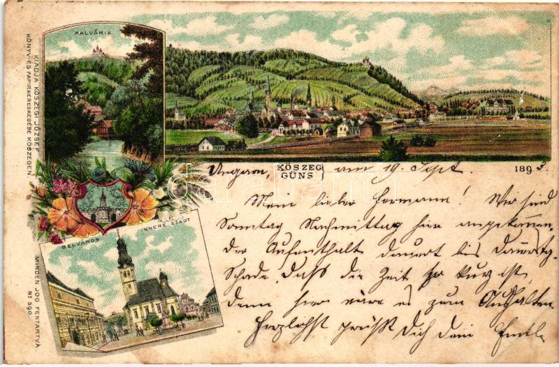 1893 (Vorläufer!) Kőszeg, Güns; Kálvária, Belváros, floral litho; kiadja Kőszegi József No. 590.