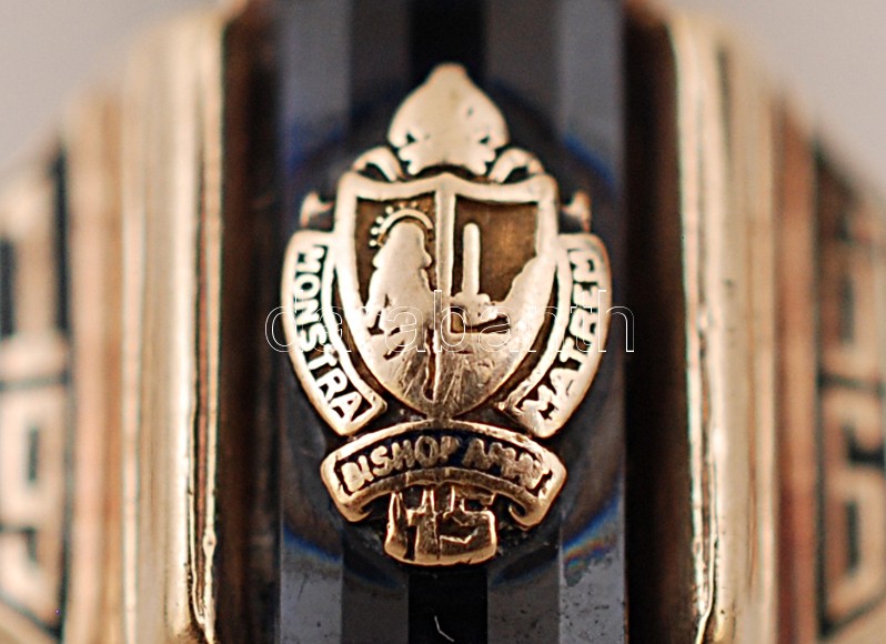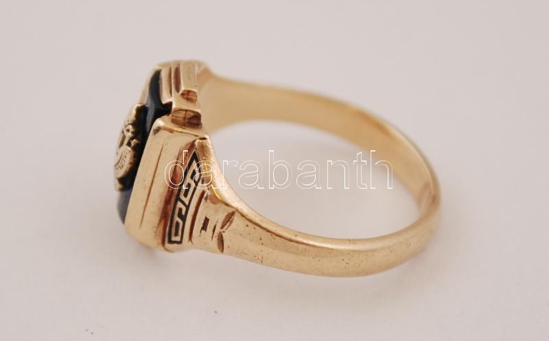 California, Bishop Amat Memorial High School arany, címeres, köves pecsétgyűrű, Au., 10K, bruttó:4,3gr., jelzett , méret:51/ California, Bishop Amat Memorial High School Gold ring with coat of arms made of gem, 10K Au, gross.. 4,3gr, marked, size: 51