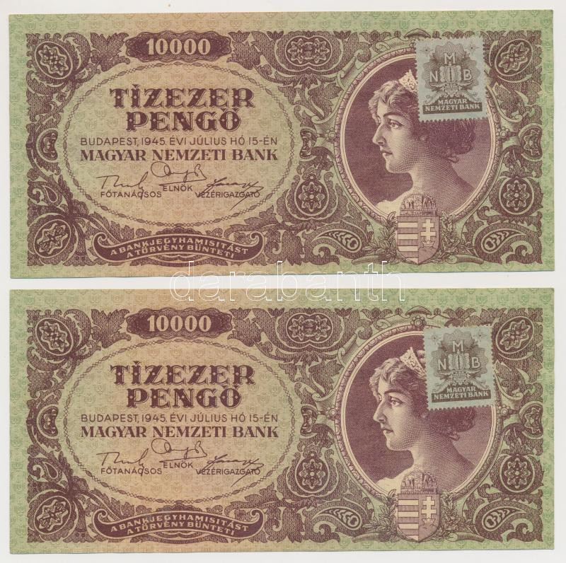 https://www.darabanth.com/en/269-Online-auction/269.0/Numismatics/Hungarian-Banknotes~400007/1945-10000P-2x-sorszamkovetok-mindketto-MNB-belyeggel-TI-I-~II1356664